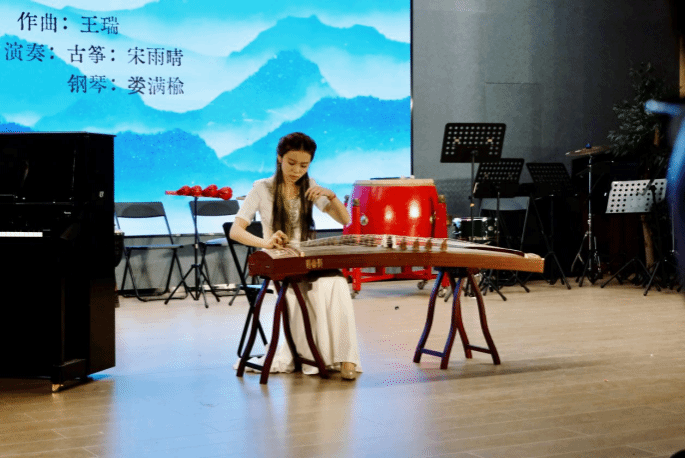 学习与工作之余,我亦未放下自幼研习的古筝技艺。作为校民乐团成员,我累计参与六首曲目的排练与演出,排练时长逾百小时,并在“北外古协”冬季专场、夏季专场等多个舞台上完成独奏与齐奏表演。当《海之波澜》的旋律从指尖流淌而出时,我不仅是演奏者,更是以音为媒的中国文化叙述者——用每一个音符,搭建起一座超越语言的审美之桥。