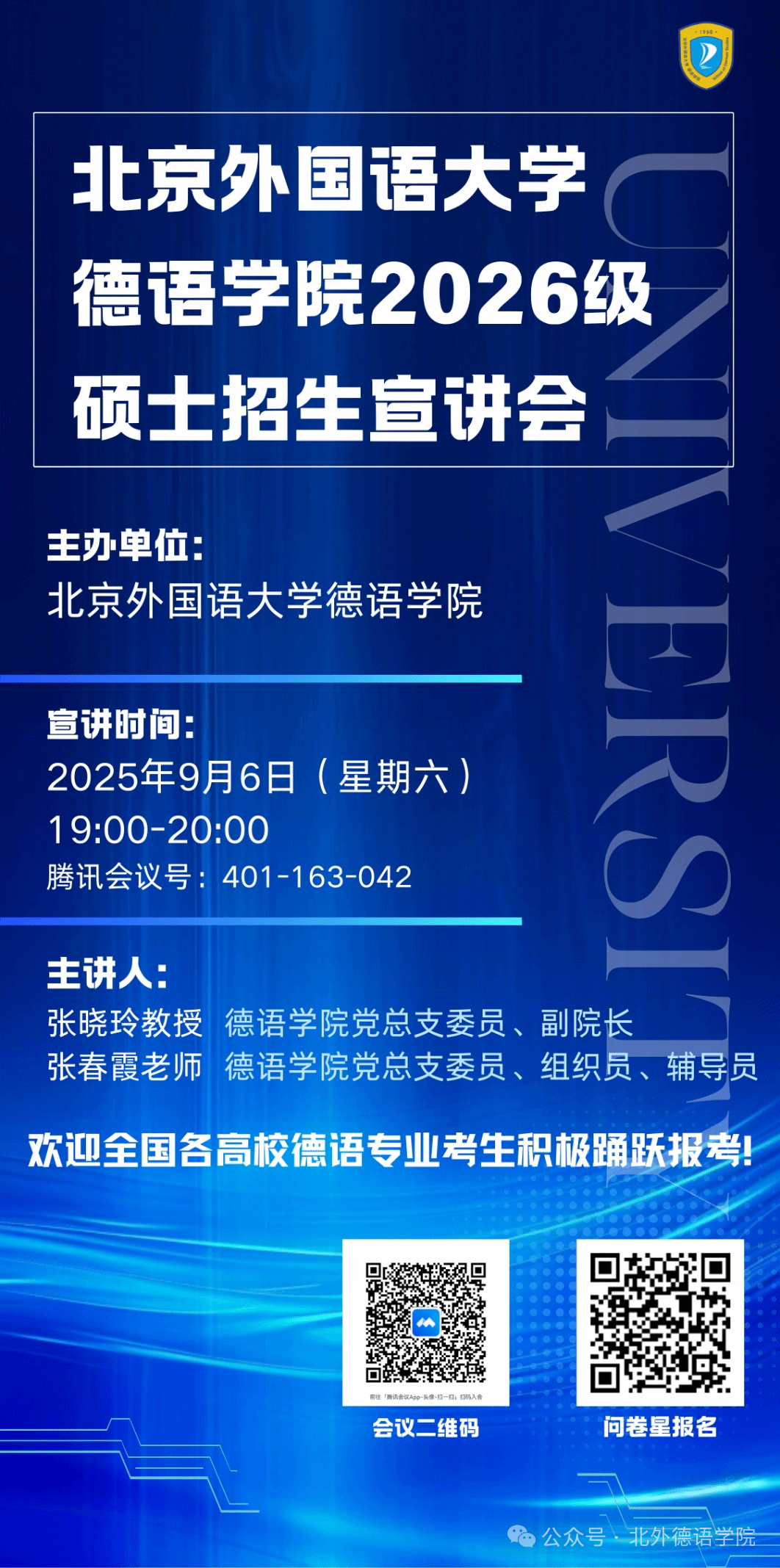 欢迎全国各高校德语专业考生积极踊跃报考!