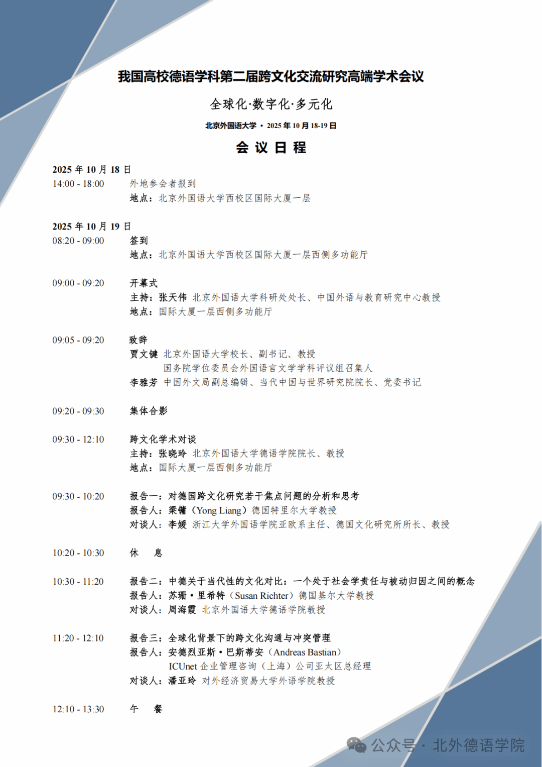 学术 | 我国高校德语学科第二届跨文化交流研究高端学术会议(日程)